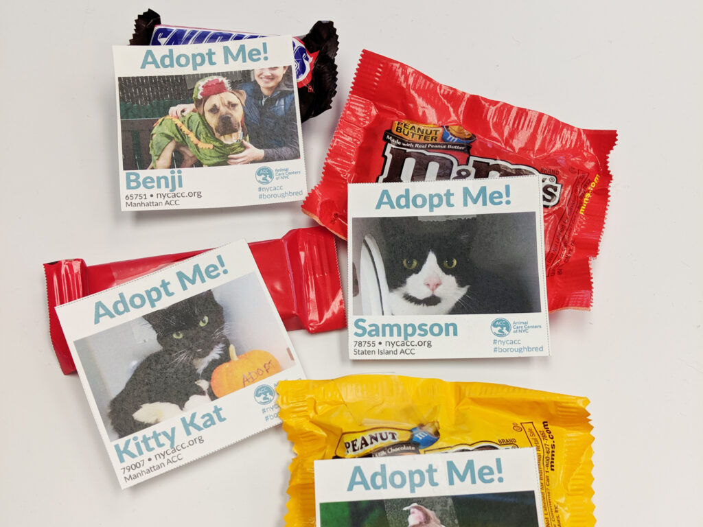 If you’re handing out candy to trick-or-treaters, why not help ACC Boroughbreds find homes at the same time? We’ve created a PDF with pictures of pets who have been waiting a while to find their forever homes. Just download, cut the cards out, and tape them to the candy you’ll be handing out. This is a fun activity for kids and an easy way to help the pets in our care!
